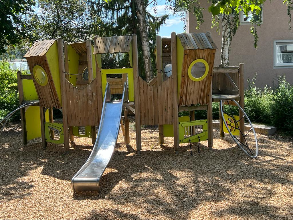 Direkt gegenüber ist der Spielplatz, den wir direkt aus dem Garten aus erreichen können.